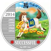 Монеты монетных дворов Австралии, Канады, Конго, Руанды, Фиджи, Ниуэ и других стран выполнены из серебра и золота как в монохромном, так и цветном исполнении. Монеты отличаются как разнообразием форм (составная монета Фиджи в форме «инь» и «янь», монета Ниуэ в форме головы лошади, монета Канады в форме цветка и т.д.), так и изображением. К примеру, на монетах Конго изображены анимированные лошади с пожеланием успеха, удачи, счастья или изобилия; на монете Фиджи лошадь выполнена в технике филиграни – из плотно из плотно закрученной по спирали серебряной витой проволоки.
