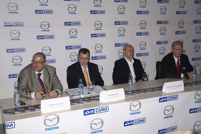 Мероприятие началось с пресс-конференции, которая вызвала небывалый интерес у представителей СМИ. На вопросы журналистов отвечали: президент Группы Компаний «СИМ» Александр Яковлевич Михайлик, генеральный директор ООО «СИМ-Ярославль» Лев Васильевич Комиссаров, директор автоцентра «СИМ-Ярославль» Александр Михарёв и руководитель отдела продаж Mazda Motor Rus. Владимир Пронин.