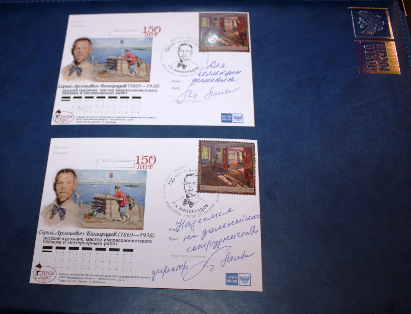 29 ноября в Некрасовском районном краеведческом музее в честь 150-летия русского художника, мастера импрессионистского пейзажа Сергея Виноградова состоялась торжественная церемония специального гашения немаркированной почтовой карточки.