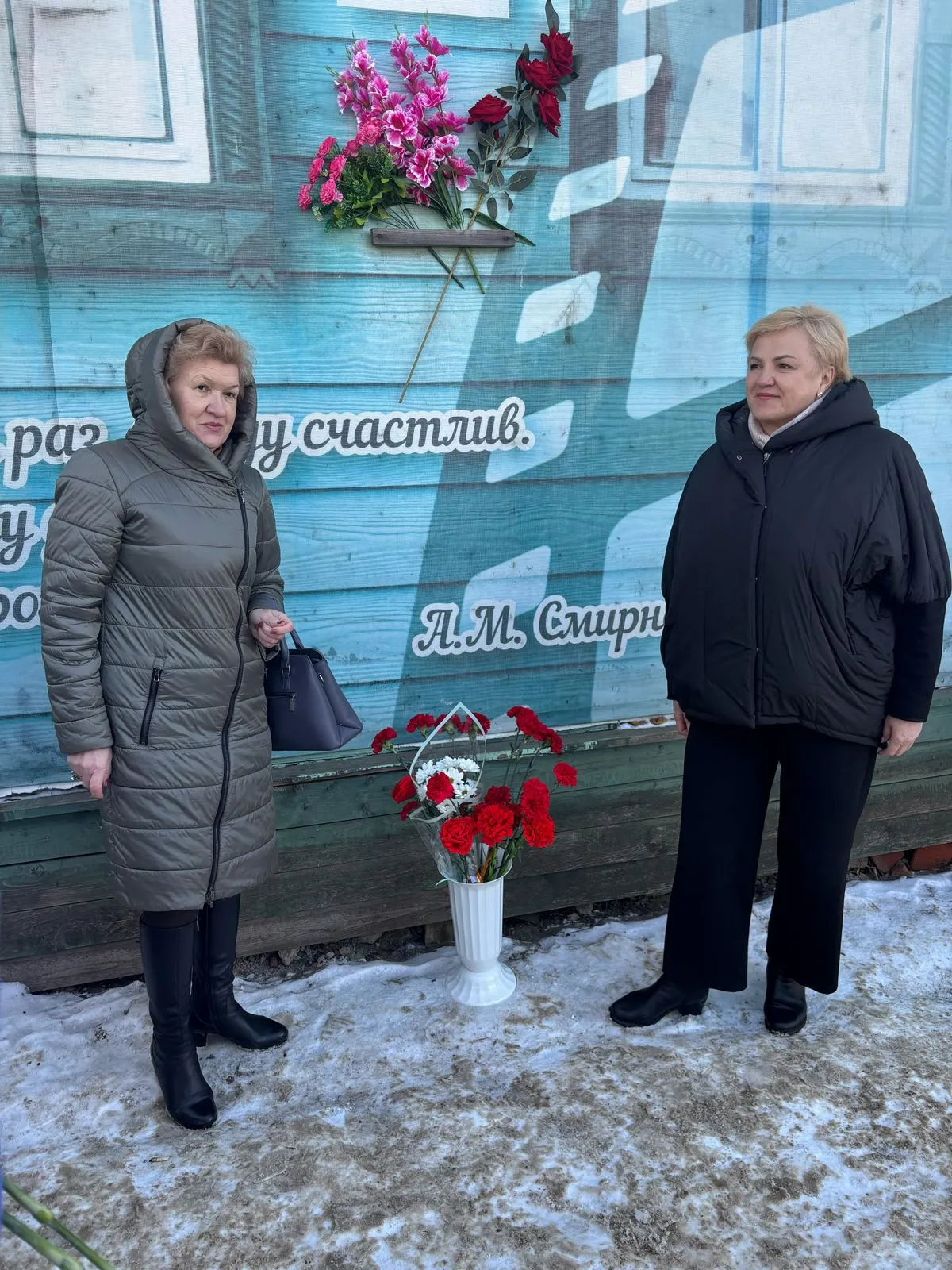 На встрече, состоявшейся у дома, в котором в детстве жил Алексей Смирнов, даниловцы с теплотой рассказывали о жизни знаменитого земляка, а затем возложили к дому цветы.