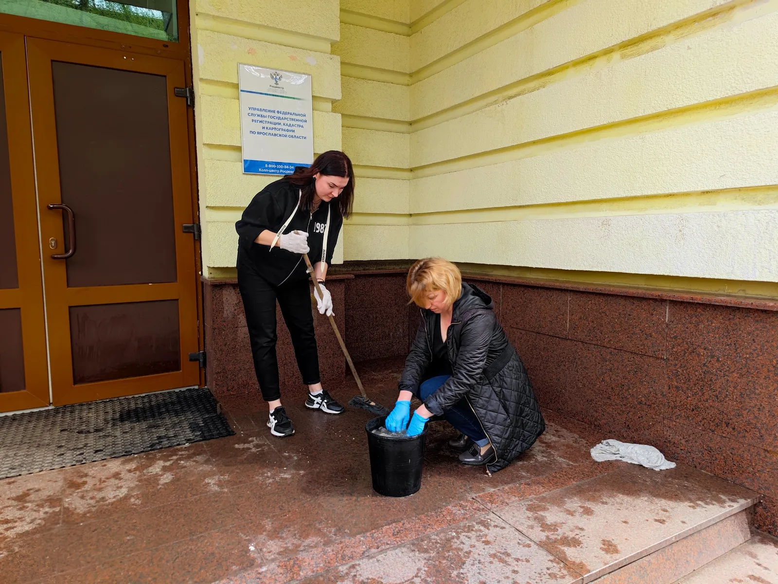 Сотрудники Управления Росреестра по Ярославской области вышли на субботник, чтобы навести чистоту и порядок на прилегающей территории.