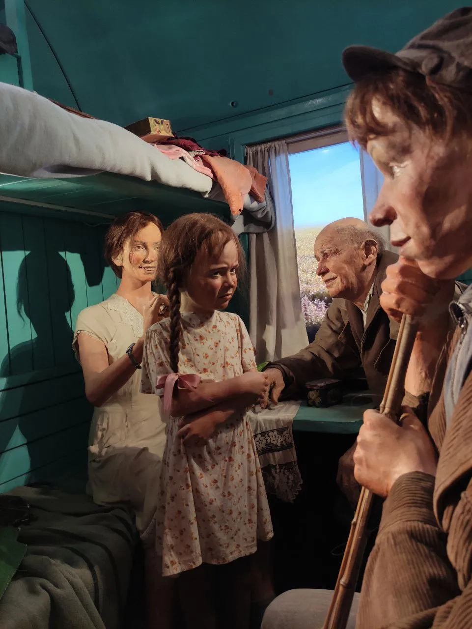 Десять тематически оформленных вагонов рассказывают о ключевых событиях и судьбах людей той эпохи.