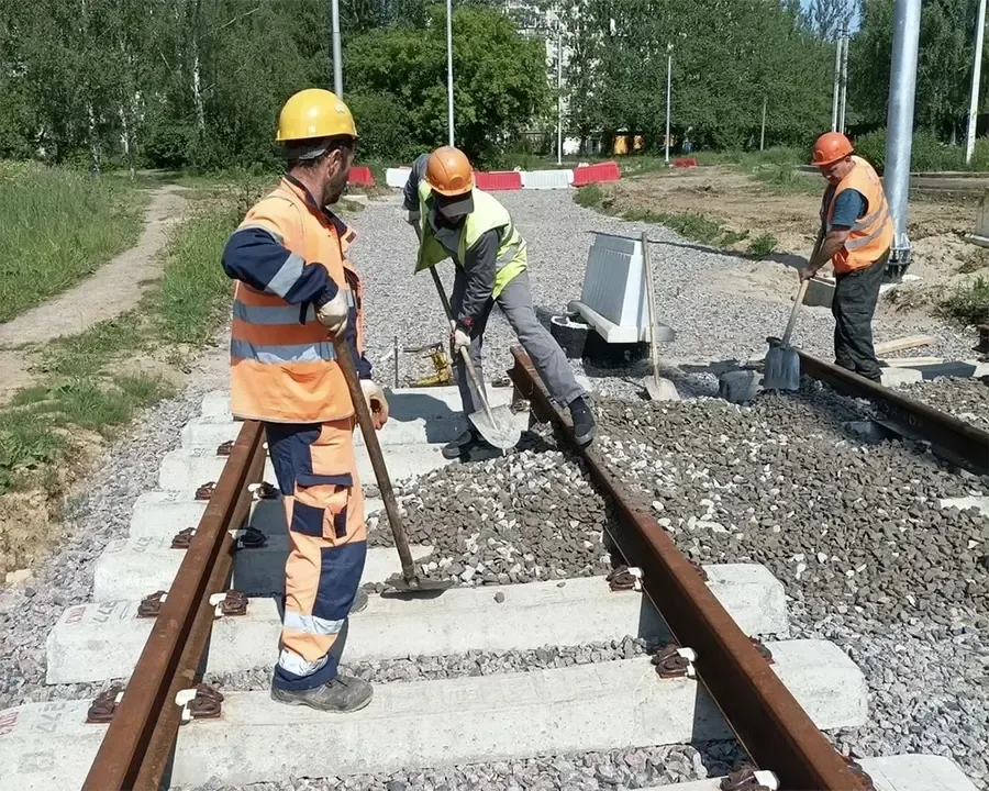 Прорыв на втором этапе: Демонтированы пути до остановки «Больница №9», уложено 5,5 км новых рельсов, обновлена контактная сеть. На объекте трудятся 80 специалистов и 12 единиц техники!