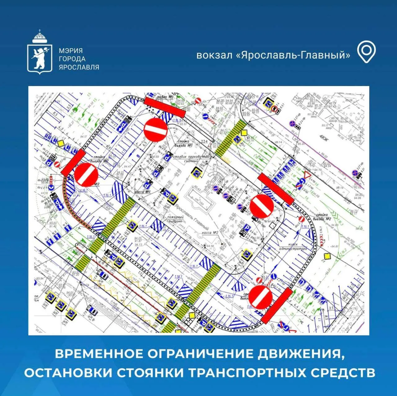 До 10 декабря у вокзала «Ярославль-Главный» действуют ограничения на движение, остановку и стоянку автомобилей. Это связано с проведением работ по обустройству парковки.