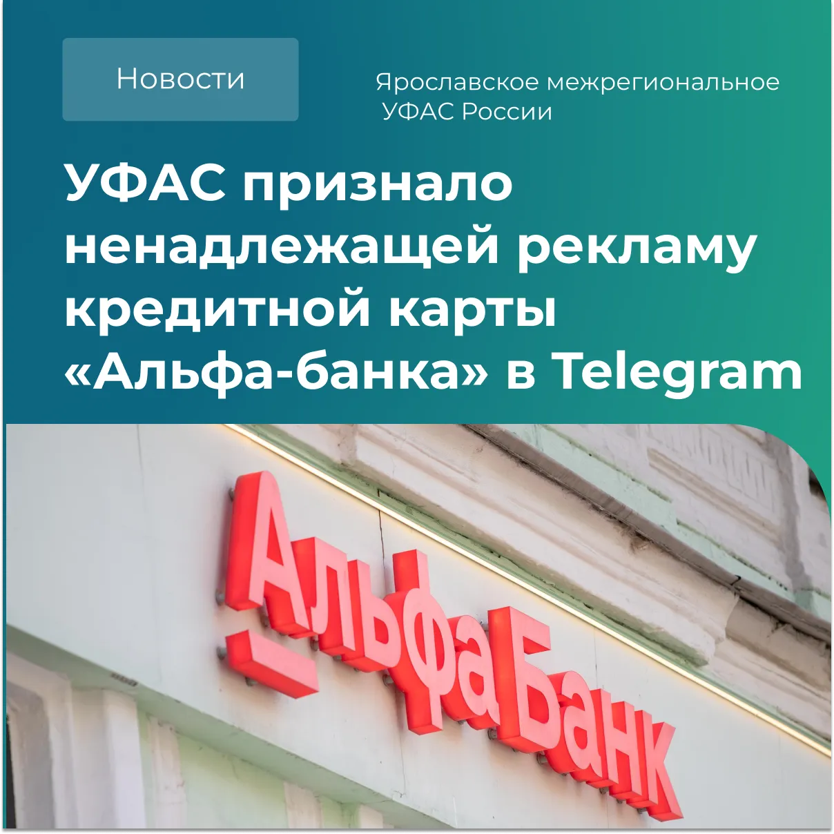 Ярославское межрегиональное УФАС России выявило нарушение Закона о рекламе в действиях АО «Альфа-Банк». Финансовая организация разместила рекламу кредитной карты в мессенджере Telegram без установленного законом предупреждения.