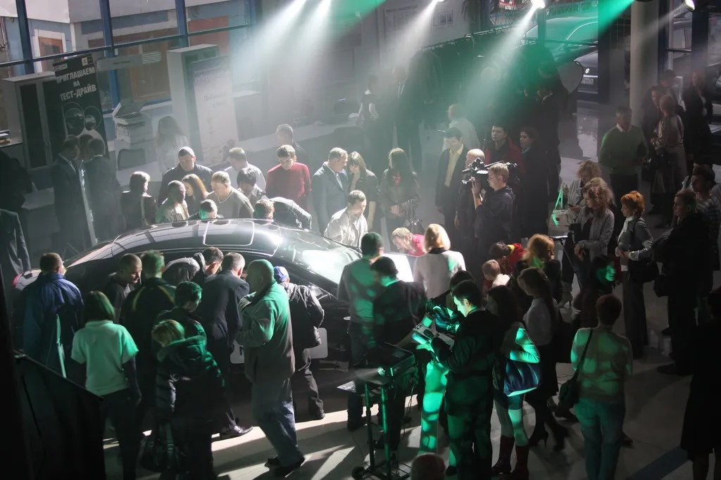 Гостей, прибывавших в назначенное время, ожидала атмосфера таинственности, которую создавала завораживающая музыка, приглушенный свет и главный виновник торжества, спрятанный под черным покрывалом. В предвкушении оставались все гости до самого открытия автомобиля.