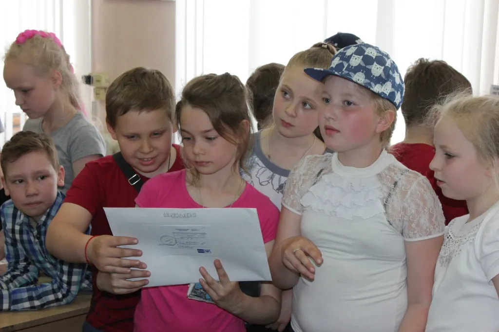 узнали, что происходит с письмом после того, как его опускают в почтовый ящик, для чего нужна почтовая марка, какие бывают конверты, как правильно написать адрес, чтобы письмо дошло до адресата. У каждого из ребят также была возможность погасить марку и собрать из заготовок картонную коробку для бандероли.