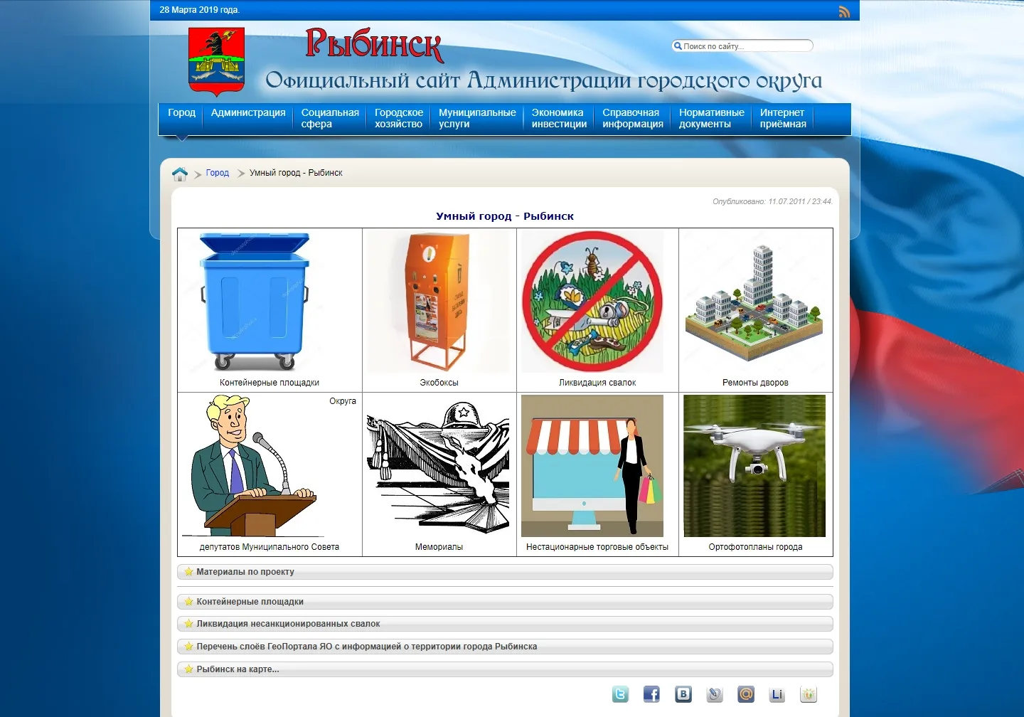 В Рыбинске для удобства жителей на официальном сайте администрации создали интерактивную карту «Умный город» с полезной информацией о размещении контейнерных площадок, экобоксов, приведенных в порядок территорий от несанкционированных свалок, отремонтированных дворах. В администрации надеются, что электронный ресурс поможет активным горожанам самостоятельно получать информацию о работе органа местного самоуправления.