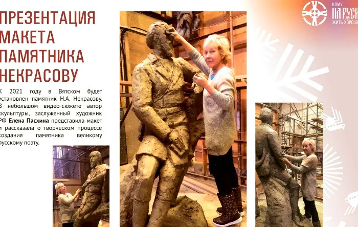 Памятник поэту-земляку Н.А. Некрасову планируют установить в историко-культурном комплексе «Вятское». Проект уже готов, его автор – Елена Пасхина. Поэт облокотился на ствол дерева, взгляд поэта задумчиво направлен вдаль. Памятник будет бронзовым, а на его изготовление собираются деньги методом краудфандинга на одной из специализированных платформ в Интернете. Краудфандинг – это добровольное коллективное вложение средств. На то, чтобы собрать средства, у авторов заявки осталось 95 дней. За этот срок они рассчитывают собрать 1 200 000 рублей.