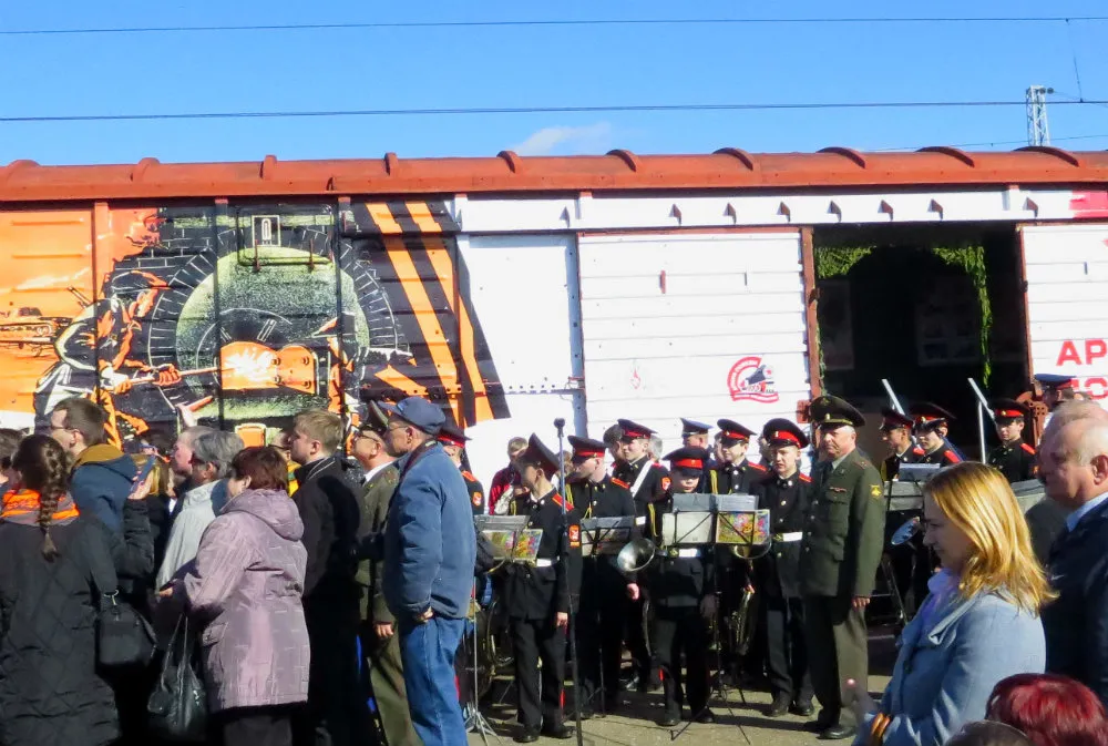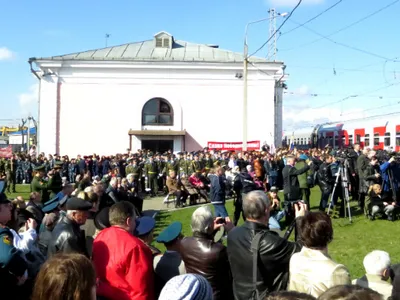 Сегодня утром в районе Московского вокзала (Вокзал "Ярославль") негде парковаться. Все приехали встречать агитпоезд «Армия победы». Эшелон представляет собой военную технику, а также вагон с экспозицией на военную тематику. На мероприятии присутствовал Сергей Николаевич Ястребов – губернатор Ярославского региона. Он рассказал, какие традиционные мероприятия проходят в Ярославской области каждый год в День Победы. Губернатору в торжественной обстановке вручили в подарок многотомное издание о войне, над которым в Министерстве Обороны работали более 10 лет. Ветеранам вручили персональные открытки с поздравлениями.