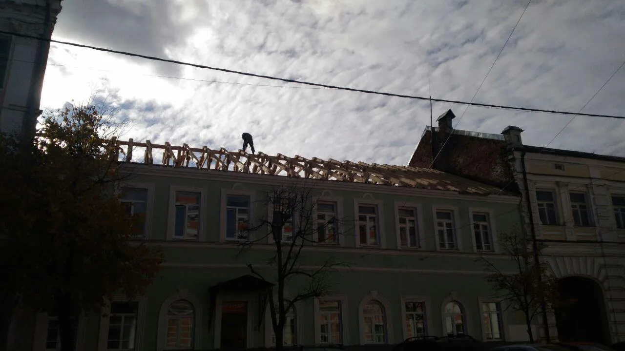 Александр Белозеров – глава администрации Кировского и Ленинского районов – рассказал, что на крыше сейчас ведутся подготовительные работы, а именно – вывозят мусор с чердака. Затем рабочие восстановят стропильную систему крыши.