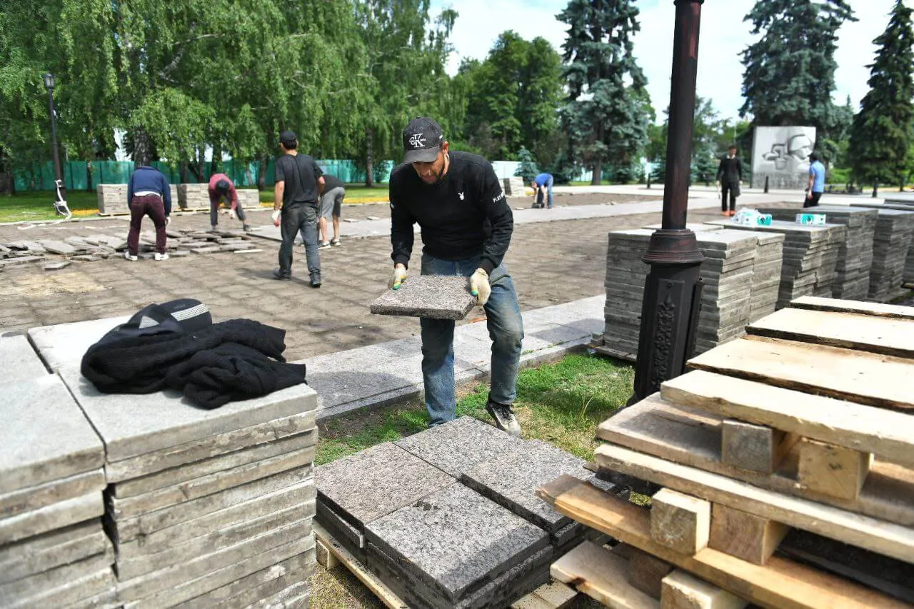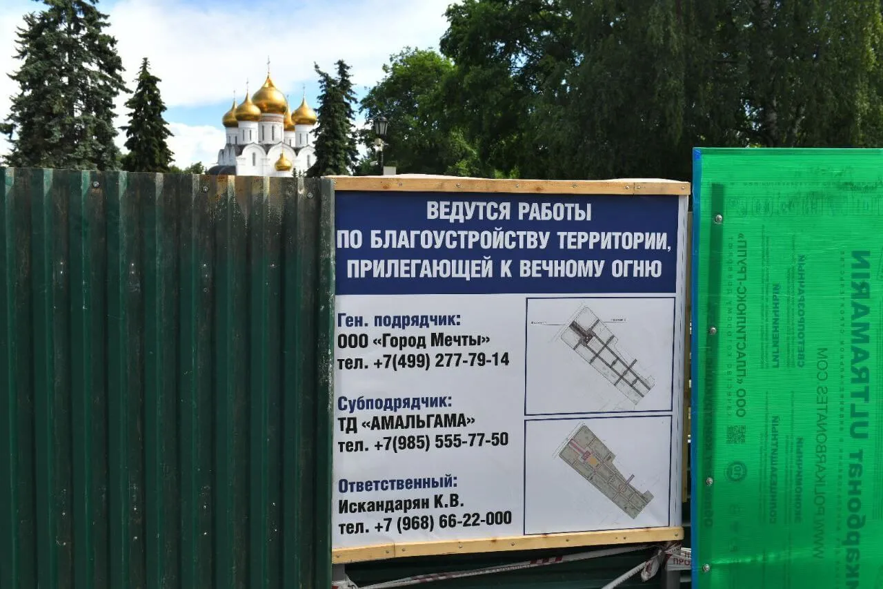 Пешеходные дорожки останутся без изменений, но к ним добавят лавочки, урны и зелёные насаждения. У памятника установят памятные стелы. Завершение первого этапа запланировано на 15 июля.