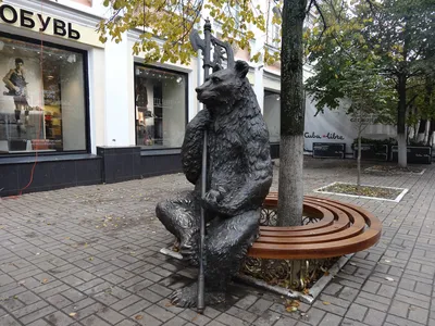 Любопытный факт: в России памятник в виде медведя, сидящего на лавочке, есть ещё в Нижнем Новгороде.