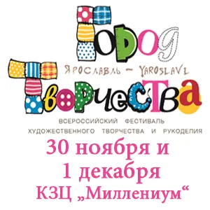 30 ноября - 1 декабря 2013 года в Ярославле, в КЗЦ «Миллениум», состоится грандиозное событие для всех любителей творчества - Всероссийский Фестиваль художественного творчества и рукоделия «ГОРОД ТВОРЧЕСТВА». Фестиваль проводится при поддержке Правительства Ярославской области.
