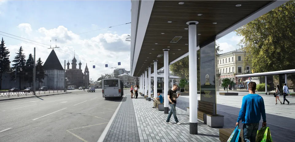 Богоявленскую площадь Ярославля замостят тротуарной плиткой и возведут навес, образующий атриум. По мысли архитекторов, он создаст единое и комфортное пространство для людей, будет служить защитой от непогоды и оградит от шума проезжающего транспорта. Навес не будет притягивать к себе внимание, но при этом придаст организованность и стройность пространству площади. Под навесом расположатся лавочки и скамьи, на которые направят инфракрасные обогреватели. В ночное время пространство под навесом будет освещается точечными светильниками и светодиодной лентой, которая создает эффект парения. Одним из ключевых объектов площади станет знак ЮНЕСКО. Скульптуры красного коня, изначально заявленной в проекте, в финальной версии обустройства площади Богоявления не будет.