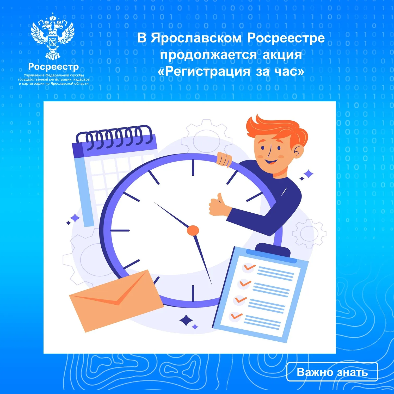 С 2023 года Управлением Росреестра по Ярославской области реализуется проект «Регистрация за час» в целях оформления ранее возникших прав на недвижимость в ускоренном порядке.