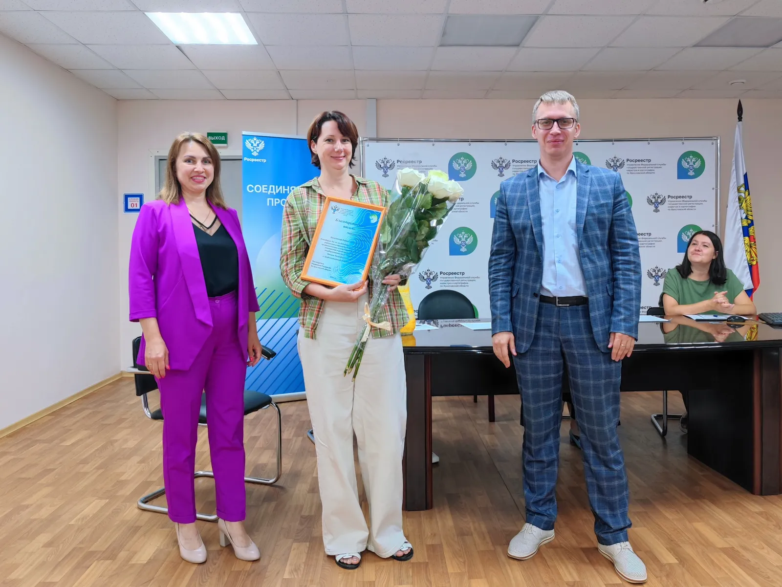 В начале встречи заместитель руководителя Управления Роман Паршков поздравил и вручил благодарственные письма за подписью руководителя Управления Елены Галеевой кадастровым инженерам с высокими показателями профессиональной деятельности. Награды получили: кадастровые инженеры Дмитрий Дергачев, Павел Назариков и Елена Анисимова.