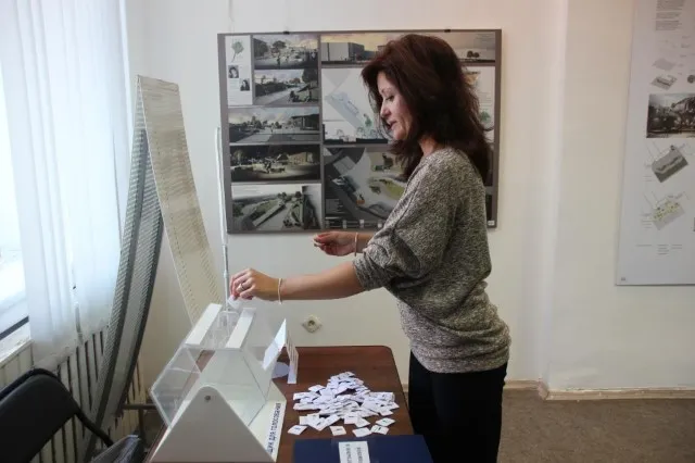 Ярославцам предлагают выбрать понравившийся проект из 16-ти представленных, свое мнение каждый может высказать, выбрав номер понравившегося проекта, после чего оставить его в ящике для голосования. Мнения ярославцев, оставленные в своеобразном «лототроне», будут учтены членами компетентного жюри, которые в итоге и выберут победителя.