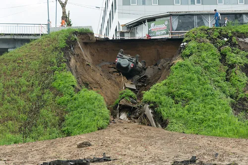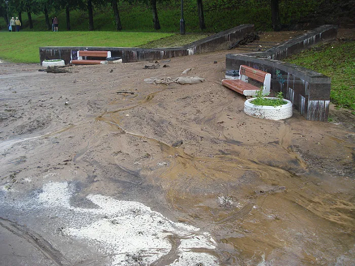 Ярославль снова, как и летом прошлого года, оказался под ударом стихии. Во второй половине дня, 30 мая, на город обрушились сильные потоки дождя, сопровождавшегося грозой. В результате стихийного бедствия произошел размыв откосов на Красном съезде в районе памятника Н.Некрасову, на Которосльной набережной в районе Спасо-Преображенского монастыря, на Волжской набережной в районе Арсенальной башни и культурно-коммерческого комплекса Красный Маяк. В последнем случае пострадал припаркованный автомобиль, он попросту «рухнул» в образовавшуюся на месте набережной яму. На ряде городских магистралей возникли подтопления и, как следствие, автомобильные пробки. Сведений о жертвах и пострадавших не поступало.
