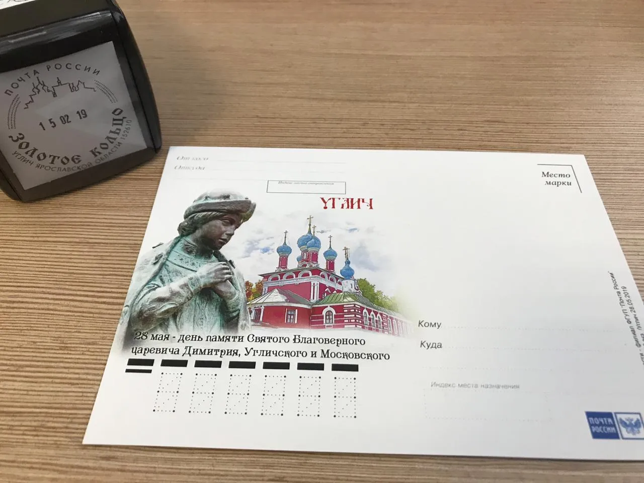 Напомним, Ярославский филиал Почты России по просьбе филателистов заказал специальный художественный штемпель с очертаниями храмового ансамбля города Углича, который в феврале прошлого года стал девятым городом туристического маршрута «Золотое кольцо».