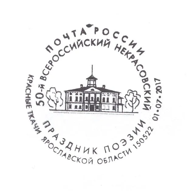 А ярославский филиал Почты России выпустил уникальный специальный почтовый штемпель «50-й Всероссийский Некрасовский праздник поэзии» с фиксированной датой и изображением фасада музея.