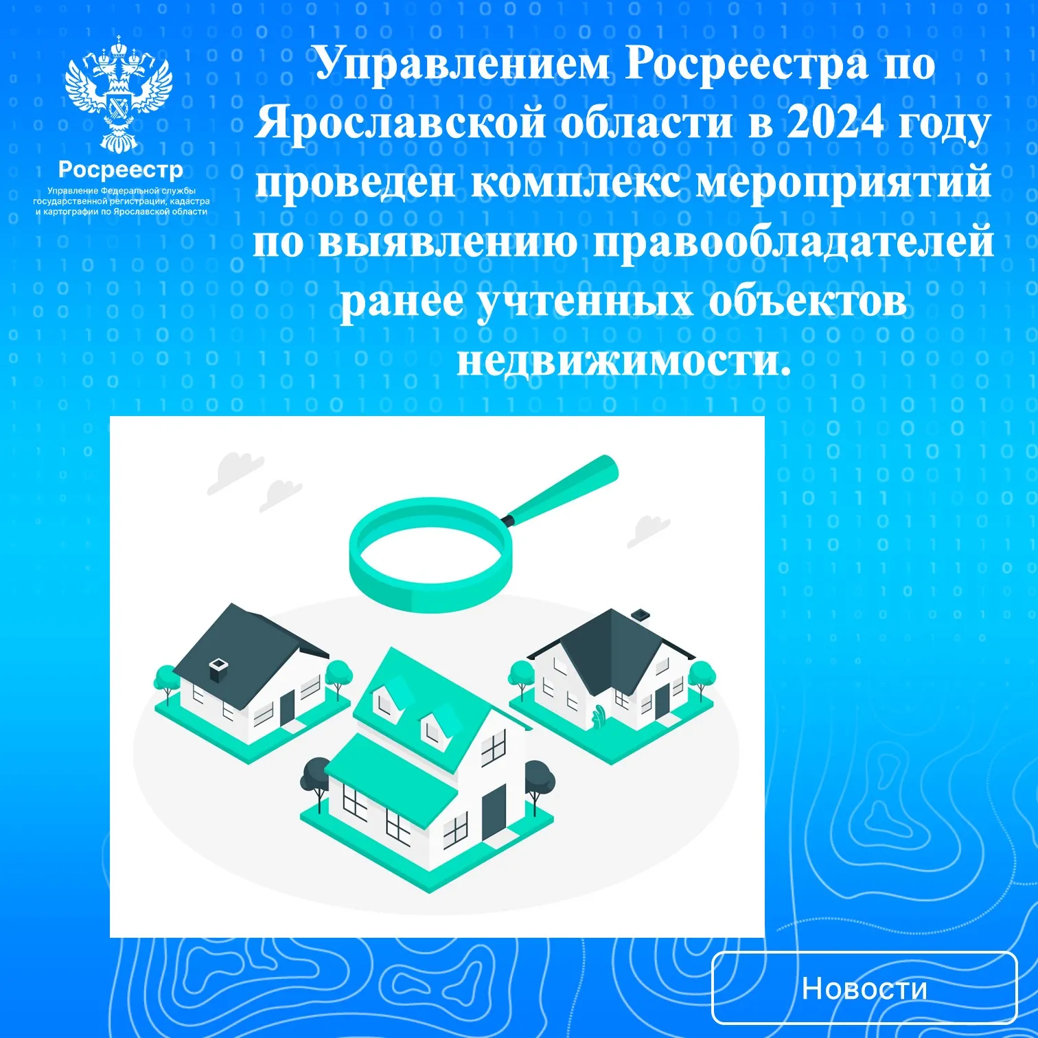 Управлением Росреестра по Ярославской области в 2024 году проведен комплекс мероприятий по выявлению правообладателей ранее учтенных объектов недвижимости.