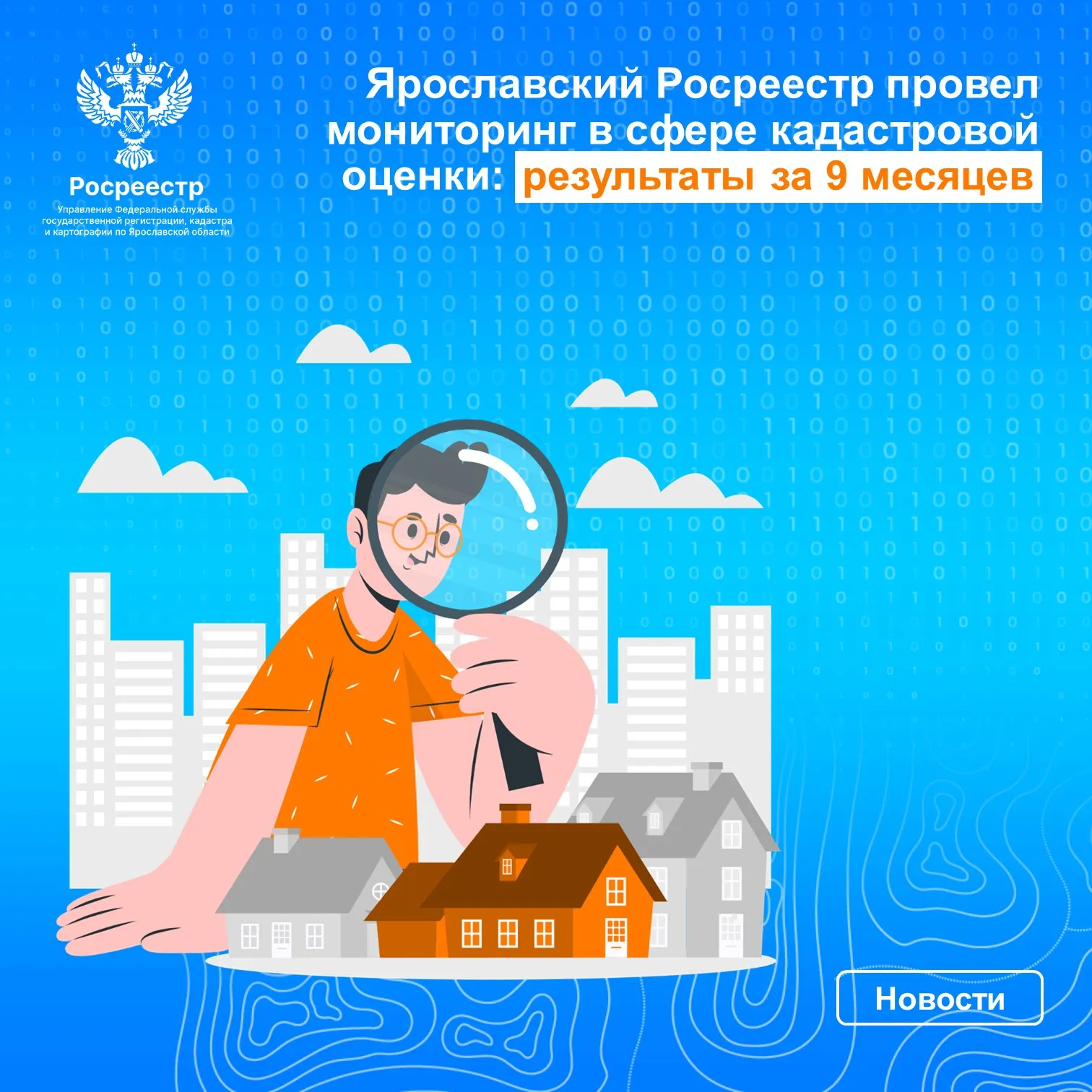 Росреестр в соответствии с положениями Федерального закона от 03.07.2016 № 237 ФЗ «О государственной кадастровой оценке» осуществляет государственный мониторинг проведения государственной кадастровой оценки, часть полномочий по ведению которого возложена на территориальные органы Росреестра, в том числе на Управление Росреестра по Ярославской области.