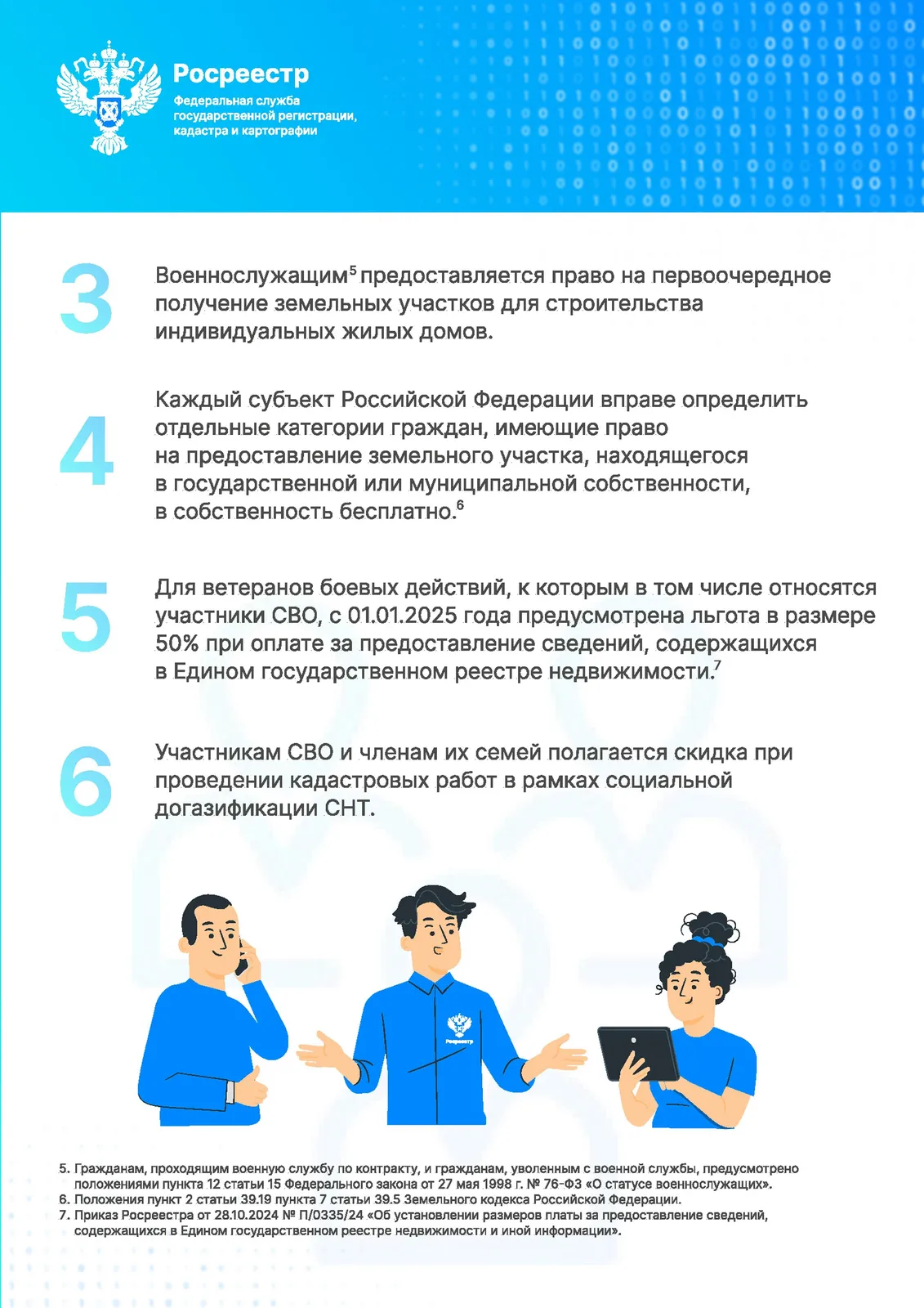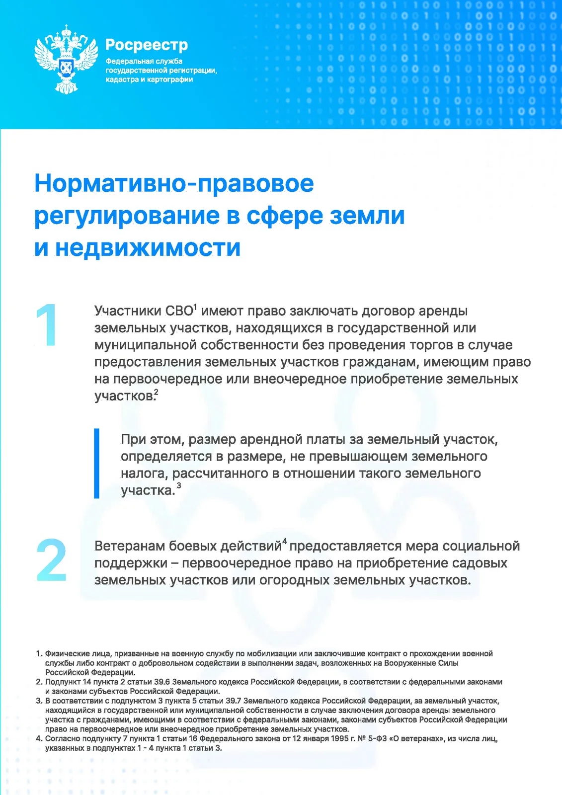 Информация об «ускоренной регистрации» и поддержке Росреестром военнослужащих (ветеранов) - участников специальной военной операции и членов их семей в установленной сфере деятельности содержится в подготовленных Росреестром информационных материалах.