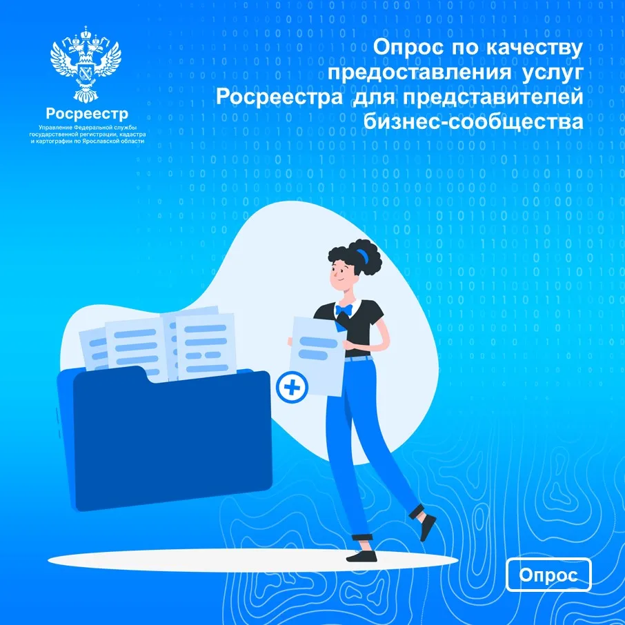 Управление Росреестра по Ярославской области проводит опрос по качеству предоставления услуг для представителей бизнес-сообщества: юридических лиц и индивидуальных предпринимателей.