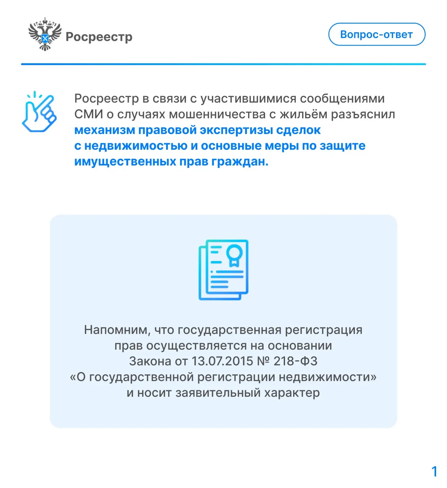 Узнать о механизме проверки законности сделок с недвижимостью помогут подготовленные Росреестром инфокарточки.