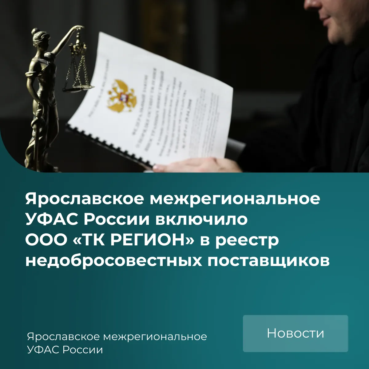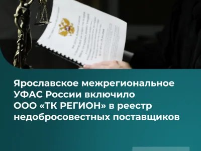Комиссия Ярославского межрегионального УФАС России включила сведения об ООО «ТК РЕГИОН» и его генеральном директоре в реестр недобросовестных поставщиков (подрядчиков, исполнителей). Основанием послужило неисполнение подрядчиком обязательств по государственному контракту на строительство социального объекта и его последующее расторжение по инициативе заказчика.