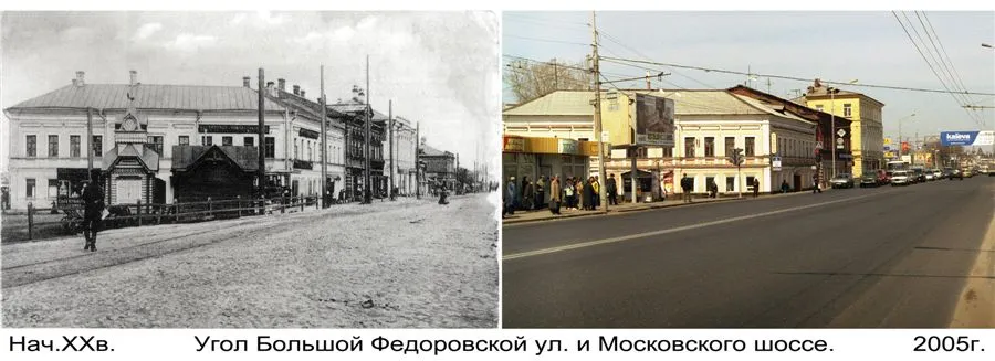 Американский мост - Московский проспектАмериканский мост - Мост через КоторосльВиадук через шоссе Москва-Ярославль - Московский проспектВокзал Северных железных дорог - Московский вокзалДамба - Московский проспект 2Дамба - Московский проспект 3Дамба - Московский проспектЗападное крыльцо церкви Федоровской иконы Божией МатериЗдание Духовной консистории - Московский проспектКрыльцо церкви Николы Пенского Федоровского приходаМосковская улица - Московский проспект 2Московская улица - Московский проспектМосковский проспектНабережная КоторослиСпасо-Преображенский мужской монастырьУгол Большой Федоровской ул. и Московского шоссеулица Широкая - улица Стачек 2улица Широкая - улица СтачекЦеркви Федоровского приходаЦерковь Андрея Критского - ул. Стачек