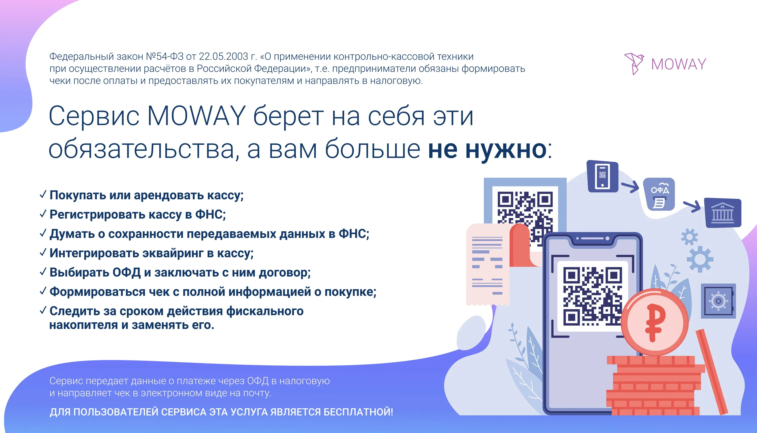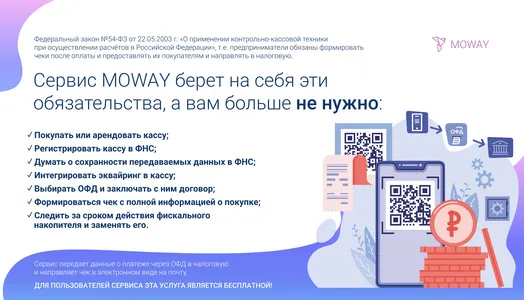 ✓ Фискализация без покупки/аренды онлайн-кассы (54-ФЗ).