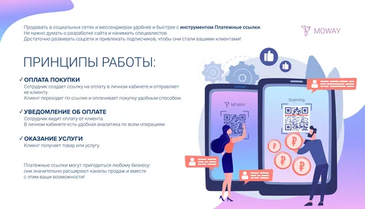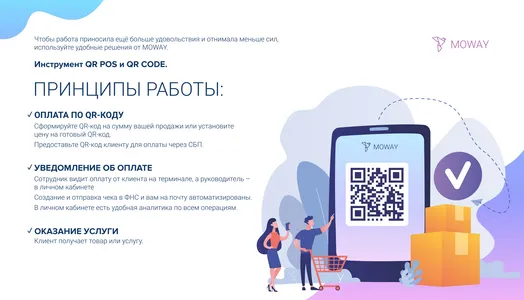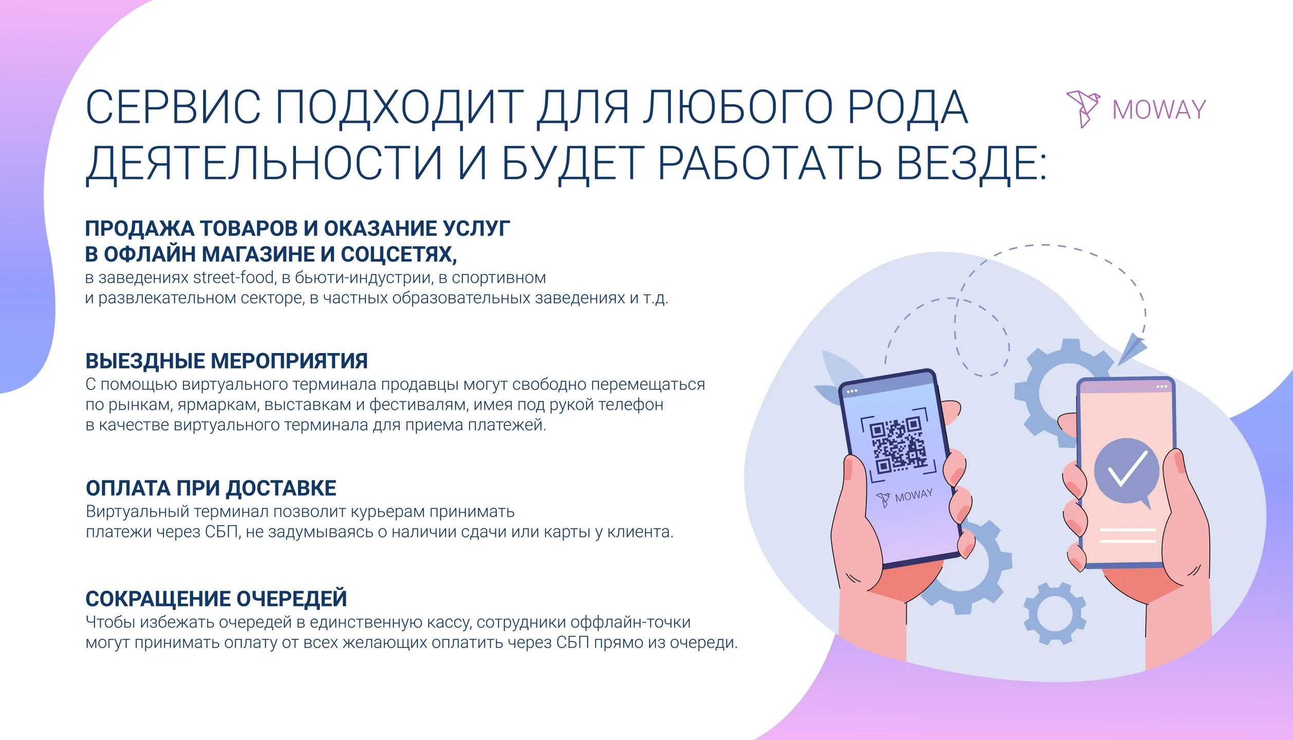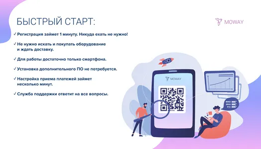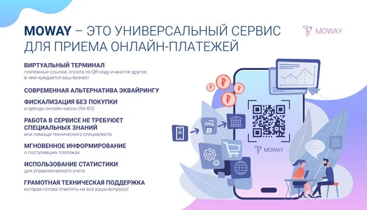 ✓ Прием платежей без использования специализированного оборудования и банковского терминала.