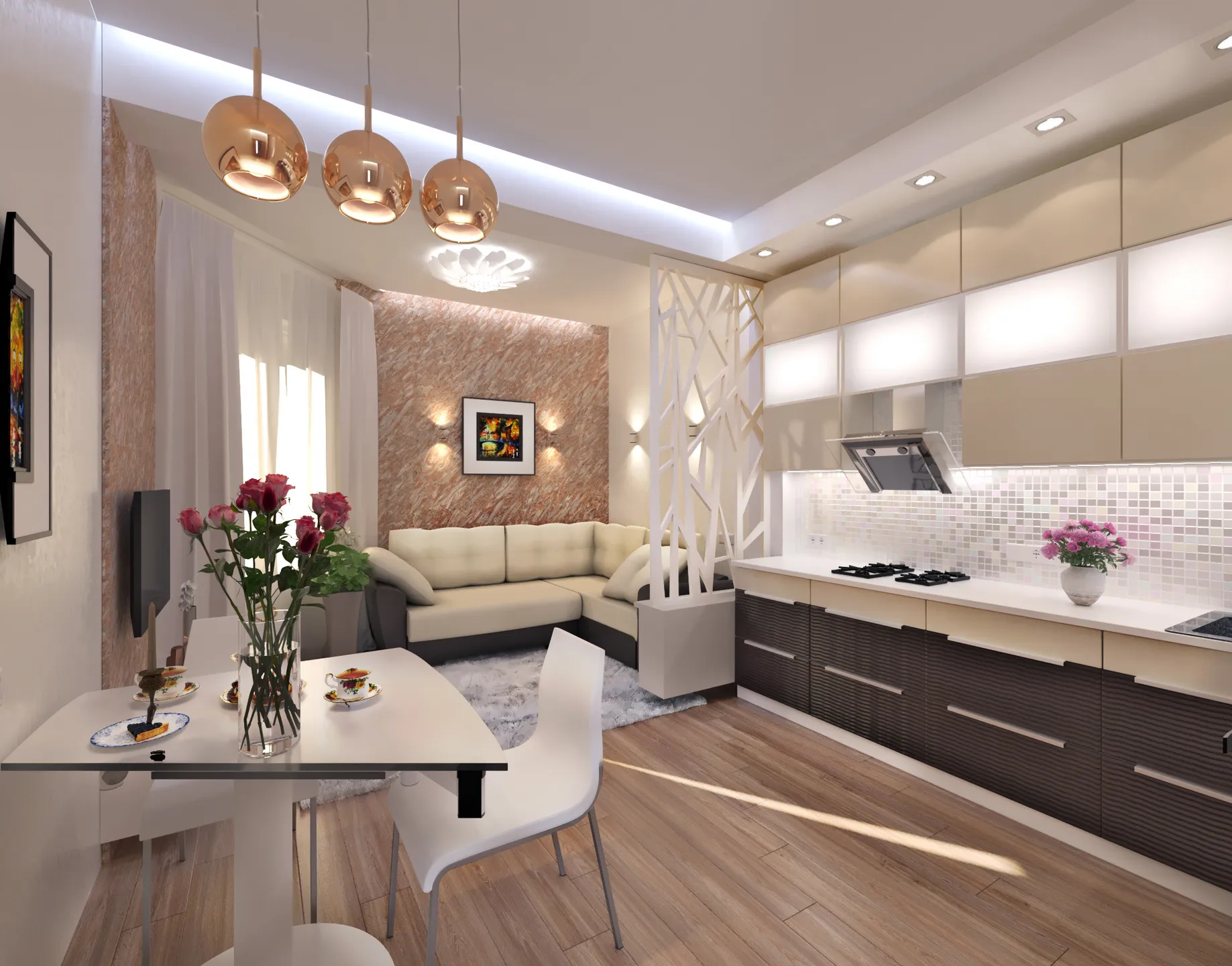 5 Фото на весь экран Слайд-шоу Гостинная Кухня. Гостинная совмещённая с кухней. Ванная комната. Гардеробная.