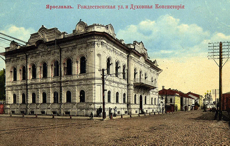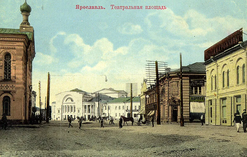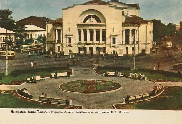 Рождественская улица и Духовная КонсисторiяТеатральная площадьВолжская набережнаяКрасная площадьКрасный спускПлощадь имени 950-летия ЯрославляПлощадь ТрудаУлица СвободыУлица ТолбухинаЯрославский ордена Трудового Красного Знамени драматический театр имени Ф. Г. Волкова