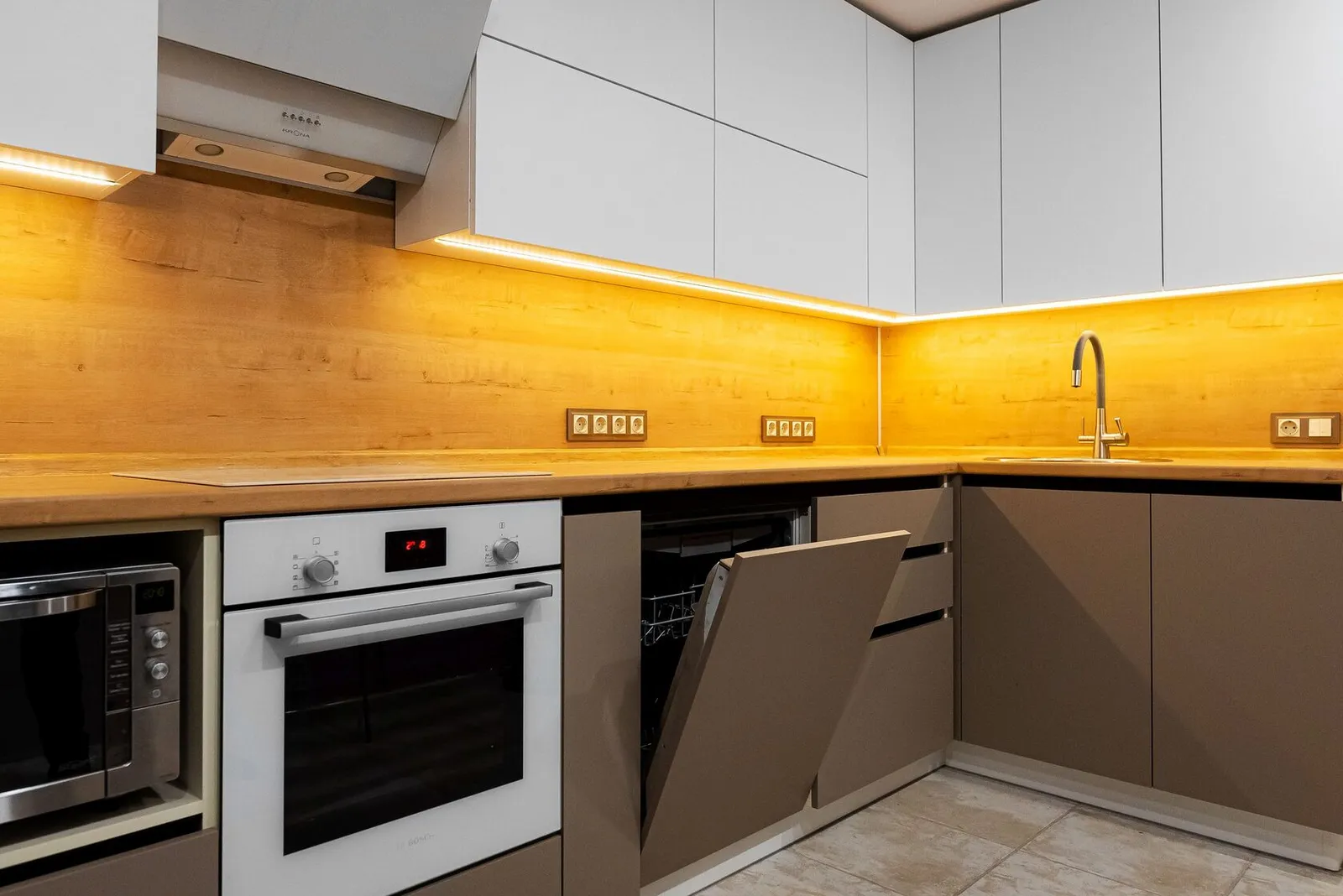 Дизайн кухни может быть любым. Например, мы предлагаем: