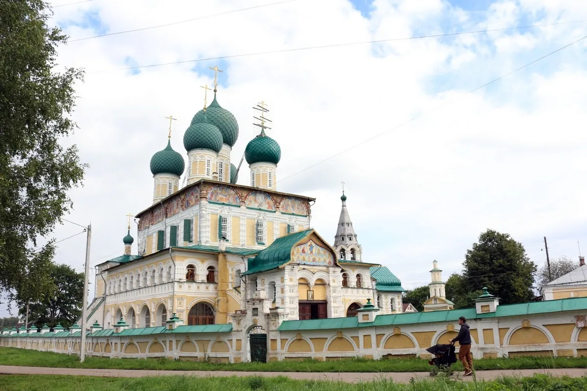 Пожалуй, главным духовным и паломническим центром Тутаева является величественный и мощный Воскресенский собор - храм, расположенный на Борисоглебской стороне, на берегу Волги. Воскресенский собор в полной мере сохранил свою древнюю архитектуру, иконопись, стенопись и церковное убранство. Построен Воскресенский храм Тутаева, как водится, на намоленном месте. Здесь в незапамятные времена была "брусчатая с пятью главами" церковь во имя святых страстотерпцев Бориса и Глеба, а в грамоте 1672-го года есть свидетельства о том, что в имелся также храм с престолом во имя святителя Николая Чудотворца. Трудно сейчас сказать, была ли здесь одна церковь или несколько. Но сегодня на этом месте стоит памятный столб последнего деревянного храма Борисоглебской слободы. Память о Святителе Николае осталась в названии источника, что протекает неподалёку по сей день. Одно мы знаем точно: уже в XVII веке здесь заложили одноэтажный летний "холодный" храм, который позднее капитально надстроили ярославские мастера.