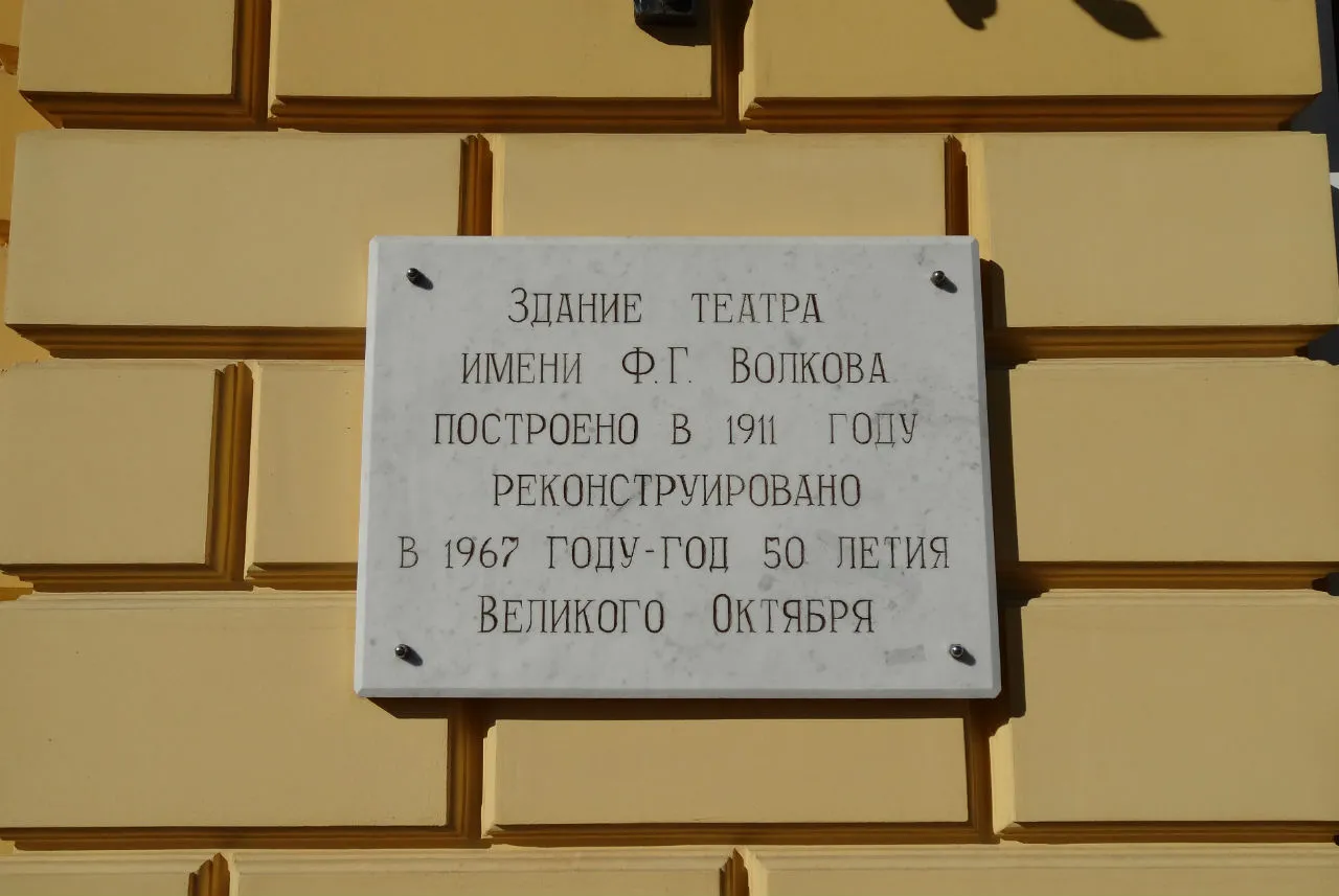 По вечерам на Волковской площади бывает очень людно. Публика томится в ожидании спектакля. Мужчины немного нервничают и смотрят на часы, женщины поправляют причёски и что-то оживлённо обсуждают. Всё почти так же, как два с половиной века назад, когда молодой Фёдор Волков готовился к своему первому представлению. Правда, случилось это не в красивом здании в центре города, а на одной из его окраин на кожевенном складе местного купца Фёдора Васильевича Полушкина. Этот человек женился на матери великого режиссёра, рано потерявшей первого мужа.