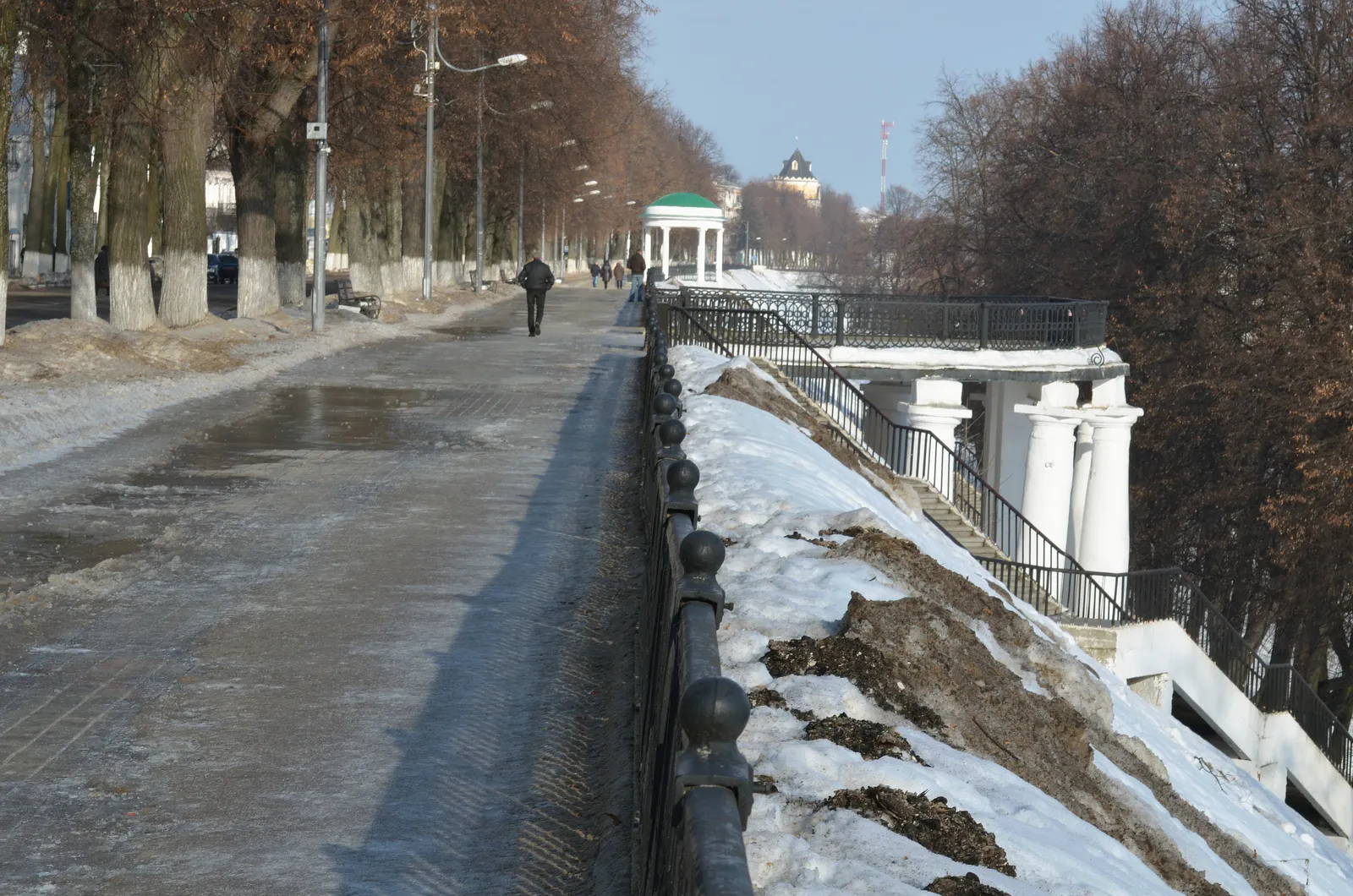 А вот капитальное строительство Волжской Набережной началось только в 1824 году. Средства на эти цели были выделены лично императором Александром I. Работы велись по проекту инженер-майора Гермеса. Самым трудным стало укрепление песчаных берегов. Для этого в их основание закладывали огромные валуны, а по склонам сажали липы. В 1840-е годы улица приобрела свою изящную литую ограду. Средства на её изготовление пожертвовали местные предприниматели Пастуховы. Тогда же на набережной устанавливают знаменитые беседки. Возвышенные, летящие, обрамлённые белоснежными колоннами, они сразу же стали одним из символов города.