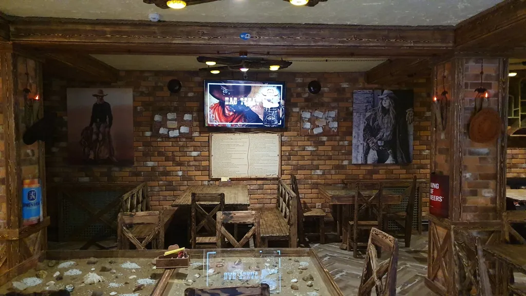 Интерьер паба «ТЕХАС» выполнен в НЕТРАДИЦИОННОМ для подобных заведений стиле: это Дикий Запад Америки; стиль ковбойский с её отличительными признаками; множество картин и атрибутов, которые напоминают именно штат ТЕХАС.