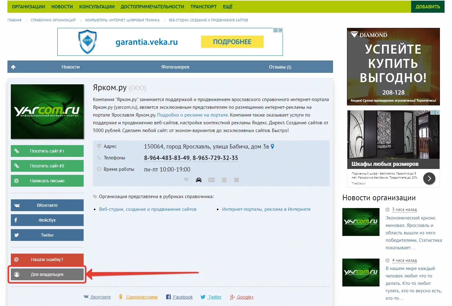 Компания "Ярком.ру" занимается поддержкой и продвижением ярославского справочного интернет-портала Ярославля Ярком.ру (yarcom.ru), помогает компаниям продвигать свой бизнес в сети Интернет. Подробно о сотрудничестве. Компания оказывает услуги по поддержке и продвижению веб-сайтов, настройке контекстной рекламы Яндекс. Директ. Создание сайтов от 5000 рублей. Сделаем любой сайт: от эконом-вариантов до эксклюзивных сайтов. Быстро!
