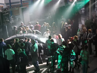 Гостей, прибывавших в назначенное время, ожидала атмосфера таинственности, которую создавала завораживающая музыка, приглушенный свет и главный виновник торжества, спрятанный под черным покрывалом. В предвкушении оставались все гости до самого открытия автомобиля.
