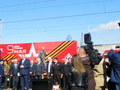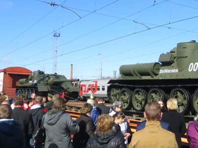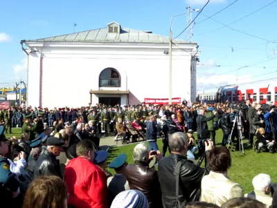 Сегодня утром в районе Московского вокзала (Вокзал "Ярославль") негде парковаться. Все приехали встречать агитпоезд «Армия победы». Эшелон представляет собой военную технику, а также вагон с экспозицией на военную тематику. На мероприятии присутствовал Сергей Николаевич Ястребов – губернатор Ярославского региона. Он рассказал, какие традиционные мероприятия проходят в Ярославской области каждый год в День Победы. Губернатору в торжественной обстановке вручили в подарок многотомное издание о войне, над которым в Министерстве Обороны работали более 10 лет. Ветеранам вручили персональные открытки с поздравлениями.